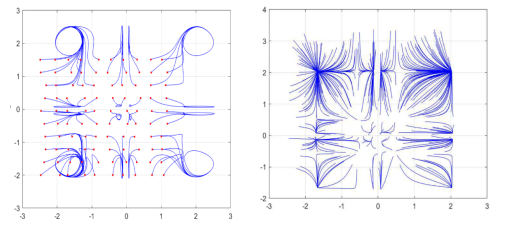 貴大新聞網訊(數(shù)學與統(tǒng)計學院)近日,國家天元數(shù)學西南中心貴州基地/貴州省數(shù)據(jù)驅動建模學習與優(yōu)化創(chuàng)新人才團隊、貴州大學數(shù)學與統(tǒng)計學院王錦榮教授團隊教師歐世勤以第一作者在計算機領域頂級期刊 IEEE Transactions on Fuzzy Systems 等期刊發(fā)表神經網絡系列學術論文,為相關領域的研究提供了新的理論和方法。針對模糊神經網絡,給出了狀態(tài)依賴切換機制構建了狀態(tài)依賴切換模糊神經網絡模型,探討了系統(tǒng)參數(shù)在狀態(tài)依賴切換下多穩(wěn)定性和固定時間多穩(wěn)定性問題,旨在為神經網絡在聯(lián)想記憶中的應用提供理論依據(jù)。研究結果表明狀態(tài)依賴切換機制會導致系統(tǒng)的平衡態(tài)增加,使之在聯(lián)想記憶應用中比傳統(tǒng)未切換的神經網絡模型有更大的儲存容量。進一步考慮系統(tǒng)參數(shù)具有概周期性,得到了具有高斯激活函數(shù)的元切換模糊神經網絡具有個穩(wěn)定的概周期解,下圖分別給出了具有高斯激活函數(shù)的2元切換神經網絡在時變概周期參數(shù)與非時變參數(shù)下的相圖。此外,在系統(tǒng)實現(xiàn)多穩(wěn)態(tài)的基礎上,提出了多控制器組合控制策略以實現(xiàn)多個平衡態(tài)的固定時間收斂,建立了固定時間多概周期性、多周期性和多穩(wěn)定性的判定準則,相關結果已投稿且被(IEEE Transact
